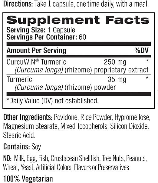Natrol® Extra Strength Turmeric is a powerful supplement that supports a normal healthy inflammation response as well as cellular, heart and joint health. †Most commercially available forms of turmeric are not readily absorbed by the body and require large doses to be effective. Natrol Extra Strength Turmeric features CurcuWIN®, a proprietary form of curcumin that has been clinically shown to increase absorption and retention in the body. A clinical side-by-side comparison showed CurcuWIN increases absorption of curcuminoids 46x over 95% standardized curcumin.